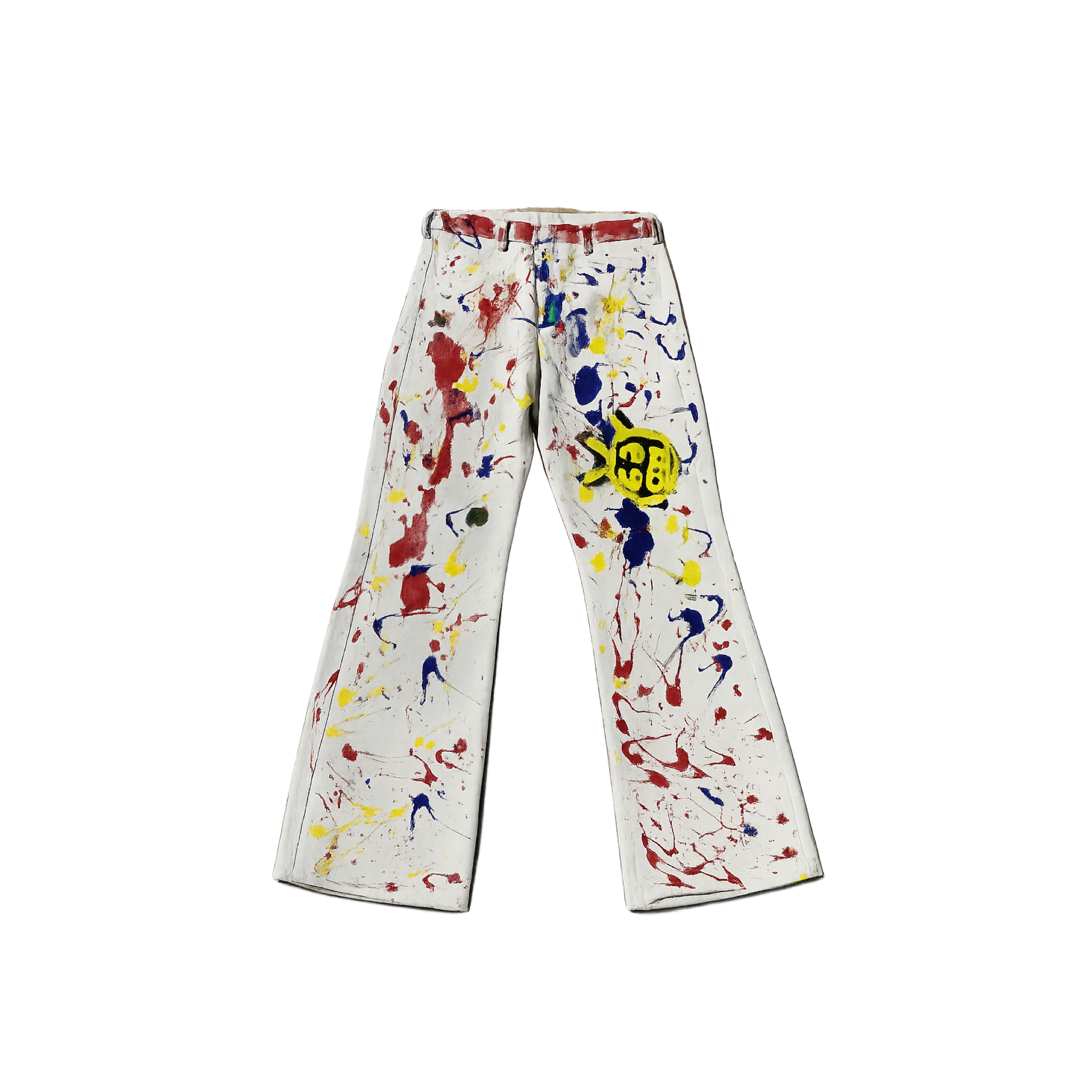 Crafted on heavyweight denim with a structured flare silhouette, it balances art and form bold from a distance, detailed up close.